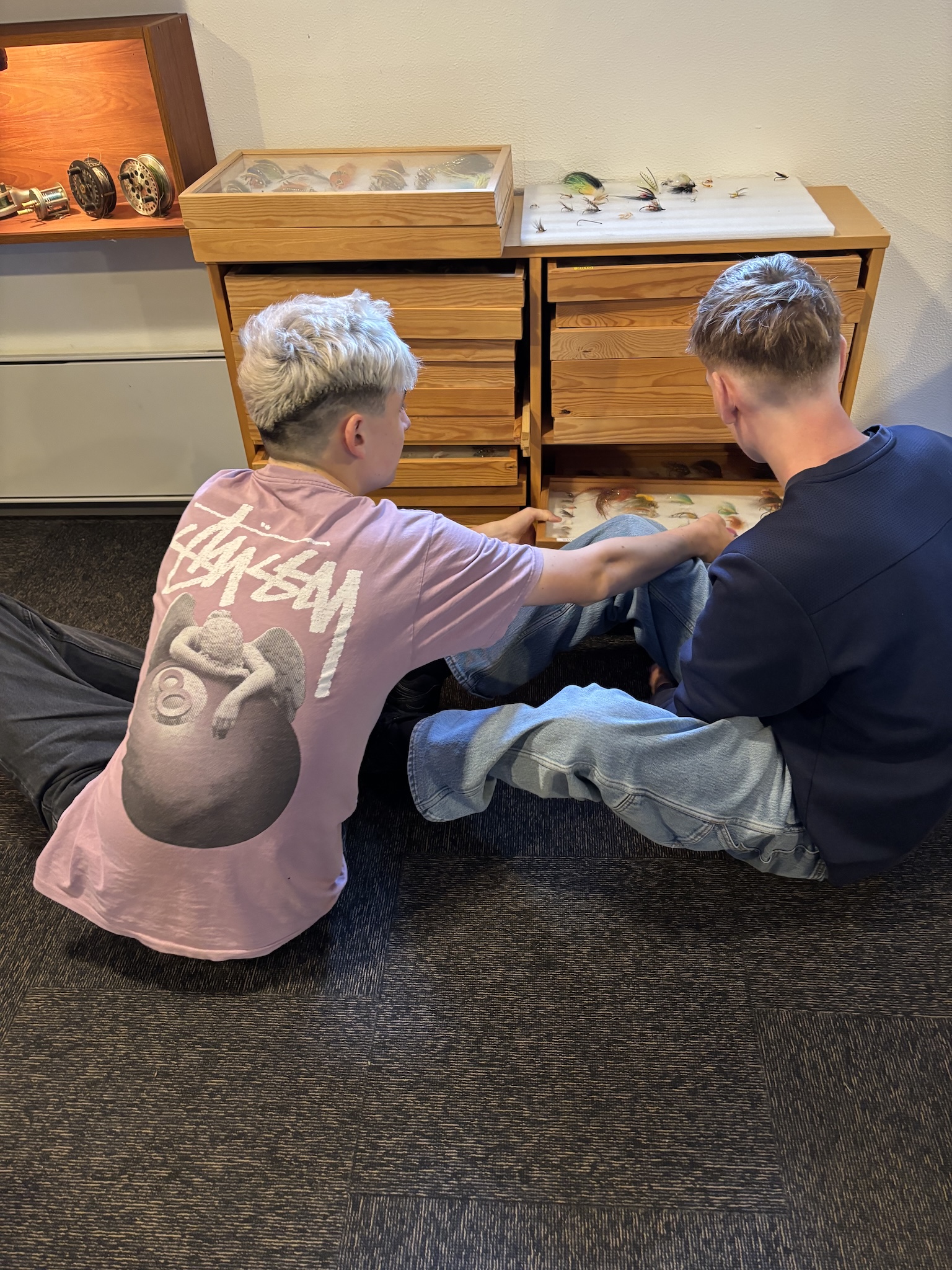 Der blev brugt store gloser omkring billederne af de fangere med fisk over 10kg. Kasserne med de mange fluer fra tidligere fluebindings konkurrencer blev beundret.